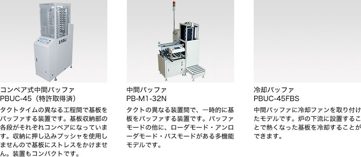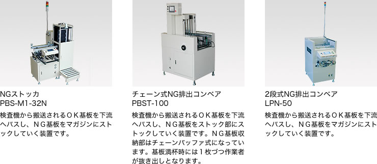 生産ラインには欠かせない、次工程へ送り出すマシーンの数々。