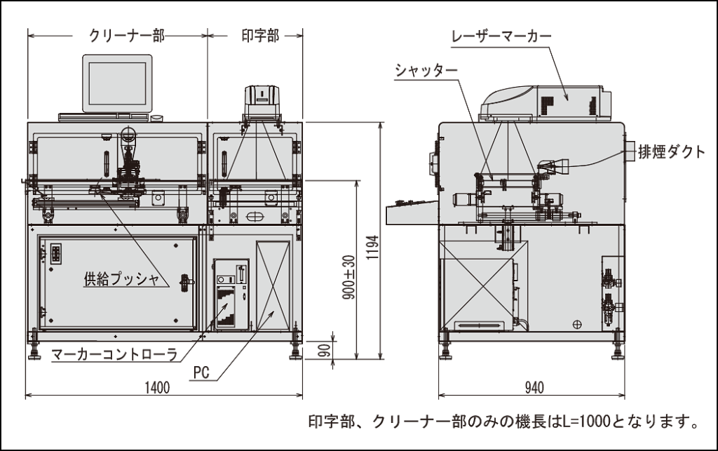 - 印字に発生する煙などは、集煙機または工場排気ダクト等で吸引が可能です。