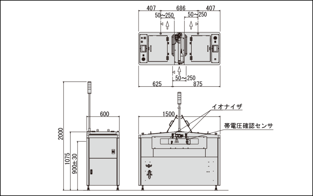 - コンベア幅可変は自動幅可変が標準となります。